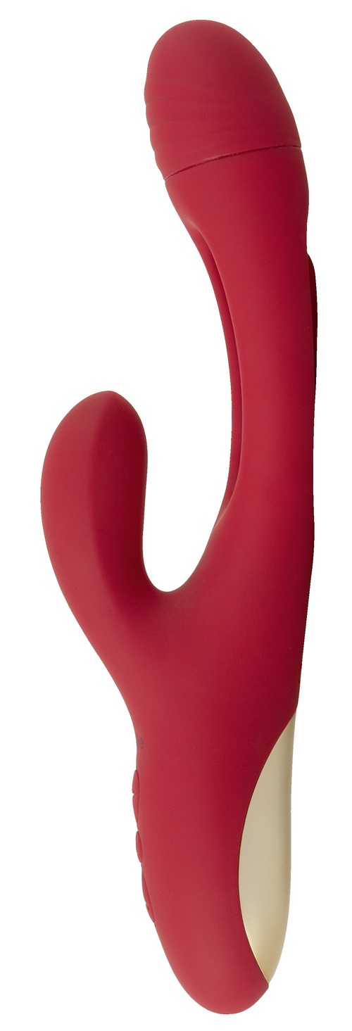 Innovatiivinen väreilytoiminto! Hyvin muotoiltu sauva osuu vaivatta G-pisteen alueelle uudenlaisella toiminnollaan. Monipuoliset värinämoottorit taas huolehtivat vaginan ja klitoriksen kiihottamisesta. Pieni, pehmeä, nystyröity kieli on varren sisällä ja liikkuu edestakaisin 7 erilaisen värinärytmin ohjaamana. Kuin kieli lipoisi sinua sisältä... Tehoa tästä löytyy, sen takaa kolme moottoria joita voit ohjata erikseen tai synkronoidusti. Myös suihkussa tai kylvyssä, slllä tämä sauva on vesitiivis. Silikoninen pinta on pehmeä, helposti liukuva ja hygieeninen. Kaareva design tekee tästä sauvasta helppokäyttöisen liukkaammillakin keleillä... Sisäänrakennettu akku, mukana USB-latausjohto. Koko pituus 24,2 cm, käyttöpituus 14,1 cm, halkaisija 2,7-3,6 cm.